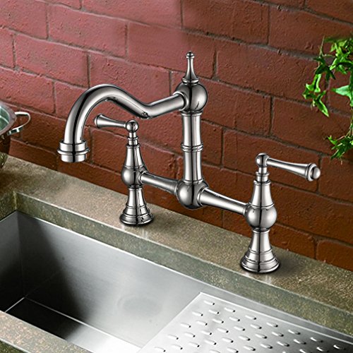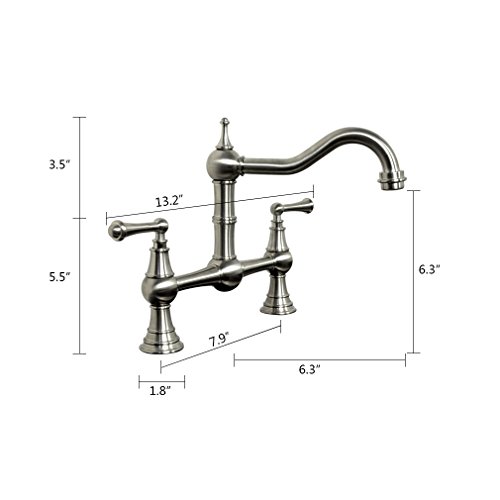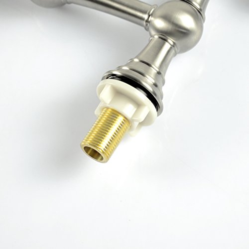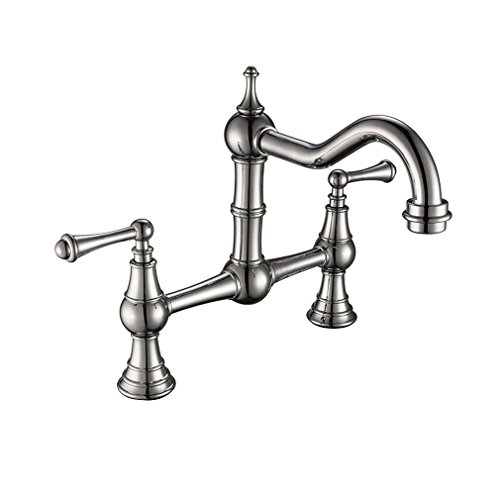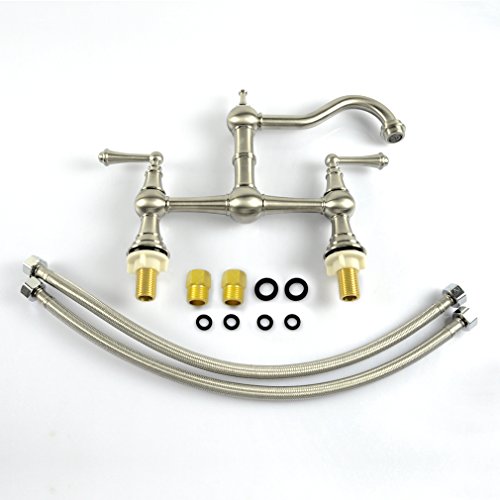 PHASAT Deck-Mount Solid Brass Two-Handle Bridge Kitchen Faucet, 8-Inch, Brushed Nickel 61323N