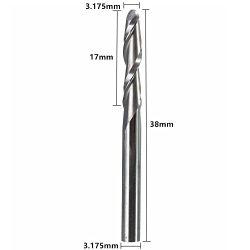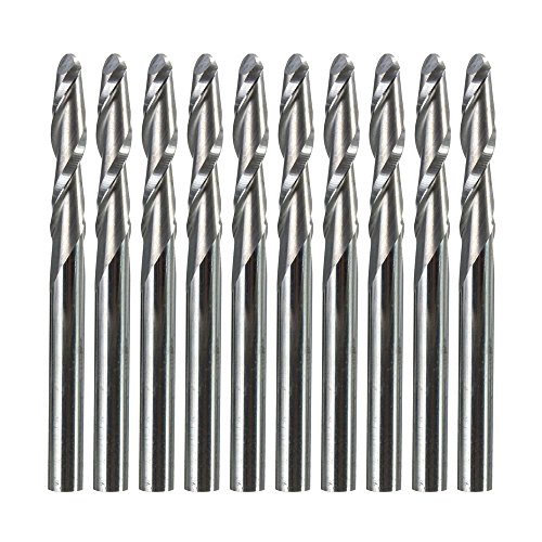 Lukcase 1/8" Shank Ball Nose 2 Flutes Carbide End Mills CNC Router Bits Double Flute Spiral Set Tool
