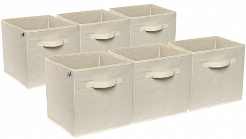 Foldable Cloth Storage Cubes 6-Pack By Deneve - Best Fabric Basket Bins Shelves - Beige Home Decorative Shelf Cubby Containers Drawer Replacements