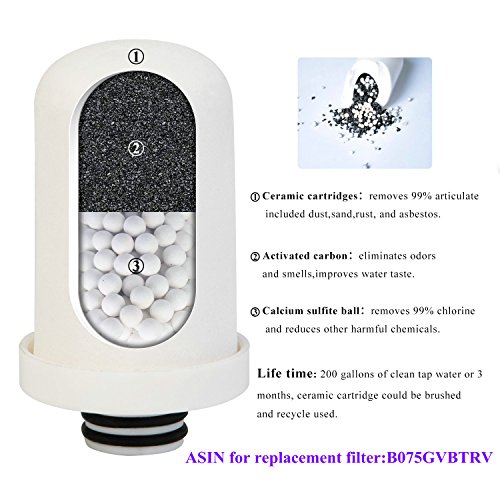 - MULTI-STAGE FILTRATION-3stage filtration with calcium sulfite ball ,activated carbon and ceramic cartridge, reduces 99% Dust,Sand,Rust,Chlorine,Taste,Odor,Asbestos found in tap water and prevent the growth of bacteria