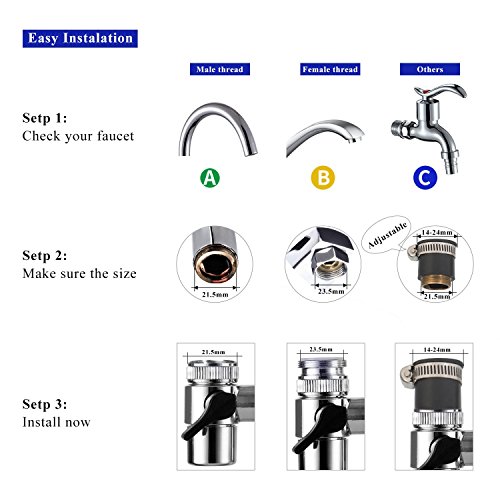 - EASY&CONVENIENT-Includes adapters to fit most standard faucet,Pure water or tap water switched freely and easily.
