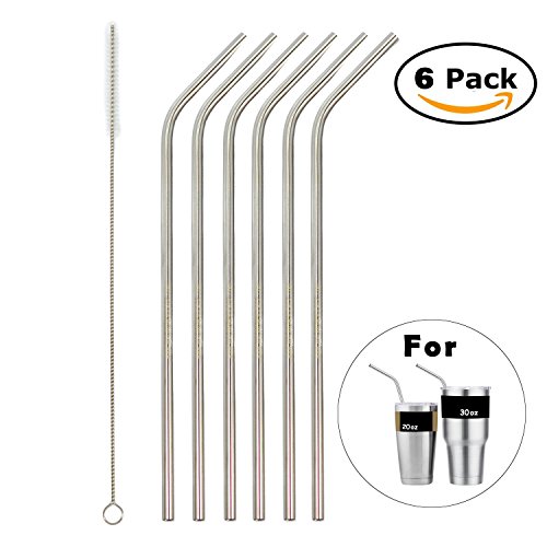Stainless Steel Straws, Anumit Reusable Metal Drinking Straws for 20 & 30 oz RTIC Tumbler, Yeti Ozark Trail SIC & RTIC Tumblers, Set of 6, Cleaning Brushes Included