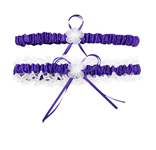 Women Wedding Bridal Legs Garter Set Bridal Garters Lace Belt with Toss Away JW20 (6-Purple)