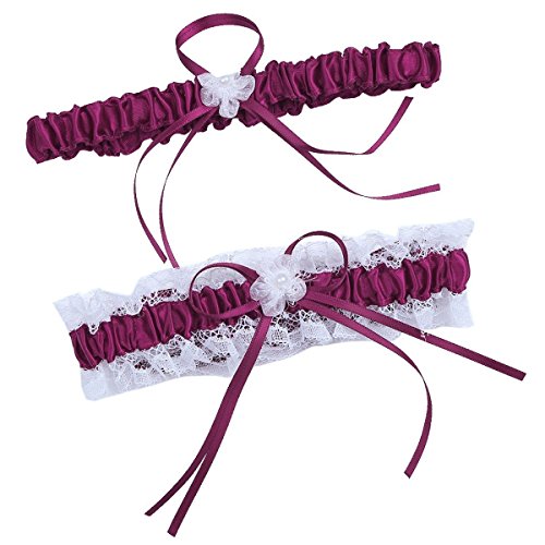 Women Wedding Bridal Legs Garter Set Bridal Garters Lace Belt with Toss Away JW20 (4-Burgundy)