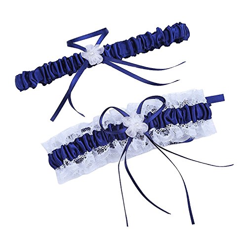 Women Wedding Bridal Legs Garter Set Bridal Garters Lace Belt with Toss Away JW20 (5-Navy Blue)