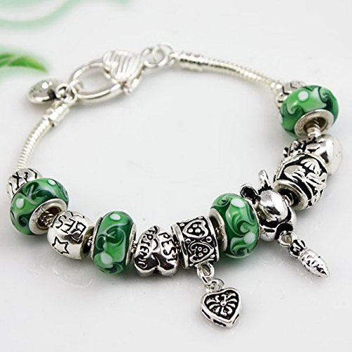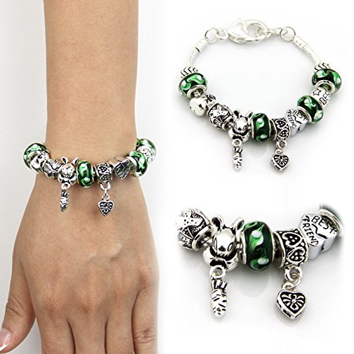 Hypo-allergenic materials:Silver Plated Bracelet & Glass Beads & Alloy Accessories.Hand crafted with glass blown around a silver-plated core make the bracelet brilliant shine and beauty.