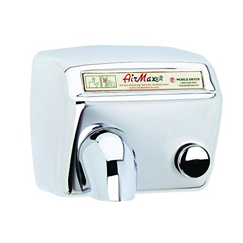 World Dryer DM5-972 AirMax High Speed and Heavy Duty Hand Dryers, Push-Button, 110-120V, Stainless Steel Polished