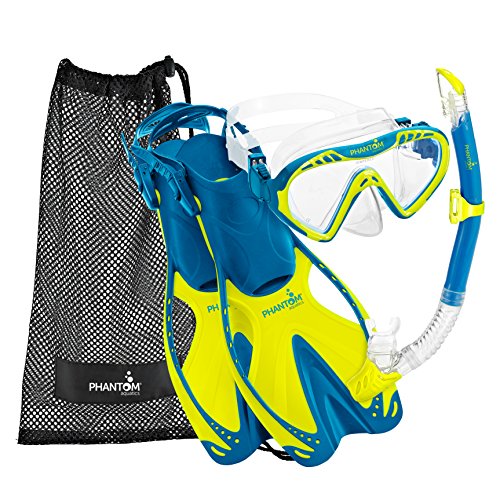 Get your young adventurer outfitted for exploring the water with the Phantom Aquatics youth speed Sport mask FIN snorkel set and mesh bag. The mask features a comfortable, Silicone Skirt for a leak-proof fit, with anti-fog coating on the lenses so they won't miss a thing. Adjustable heel straps on the fins allow for a custom fit, so this set will last through several seasons. They'll love swimming with the Phantom Aquatics youth speed Sport snorkel set.Feature