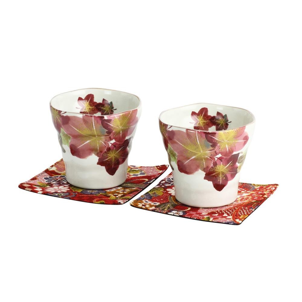 紅葉のあかね色が鮮やかで美しいロックカップのコースター付きペアセットです。 |
