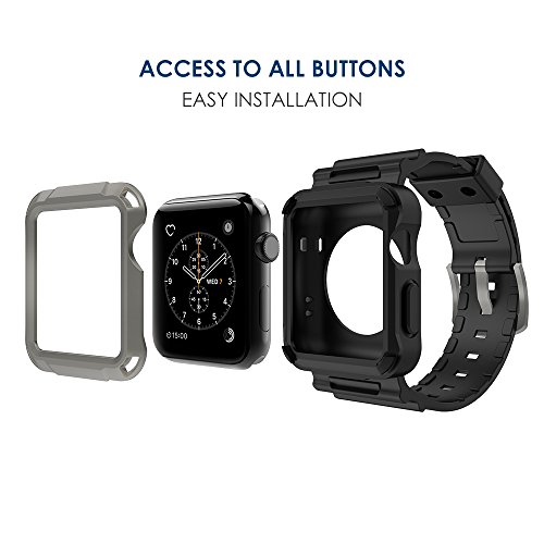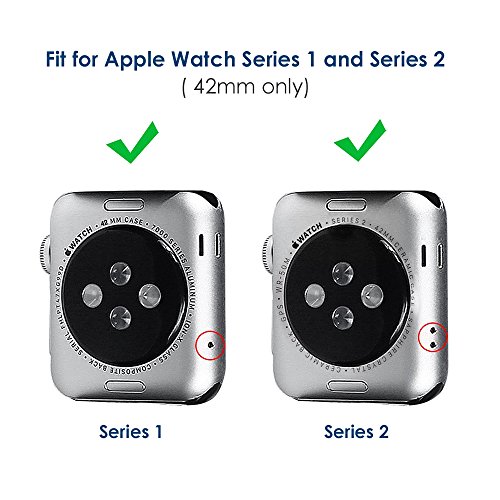 1. Precise cutouts for Apple Watch 42 mm; Advanced front cover Snap-On design for easy installation. Fit for your Apple Watch 42mm with easy snap-on design.As the Apple Watch screen protector will affet the screen light slightly, you can remove it then it can fit the apple watch series 1 and series 2 at the same time.