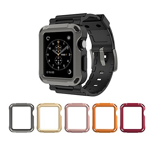 Simpeak 5 Color Protective Case with Black Strap Bands for Apple Watch 42mm Series 1 Series 2