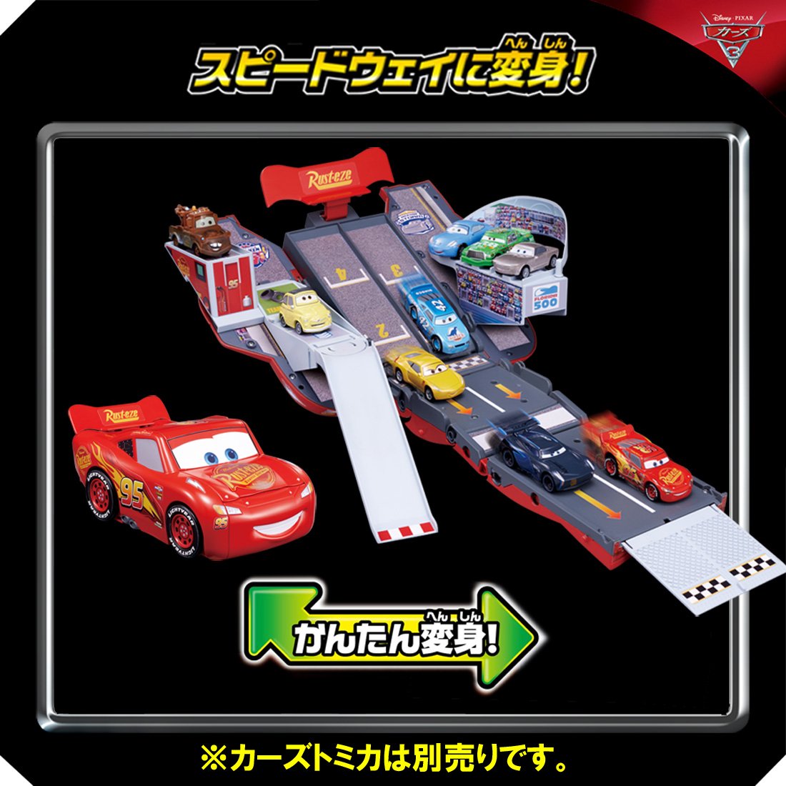 When you expand McQueen, it turns into Speedway you can play with Cars tomica!