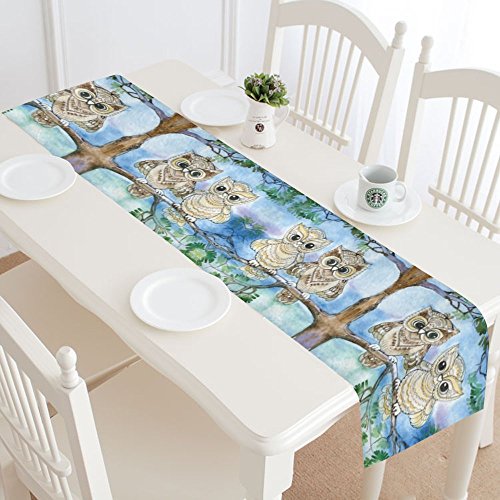 -. Title : InterestP.R.Int Animal Owl Sitting on Tree Long Table Runner 16 X 72 Inches, Bird on Tree Branch Rectangle Table Runner Cotton Linen Cloth Placemat for Office Kitchen Dining Wedding Party Home Decor