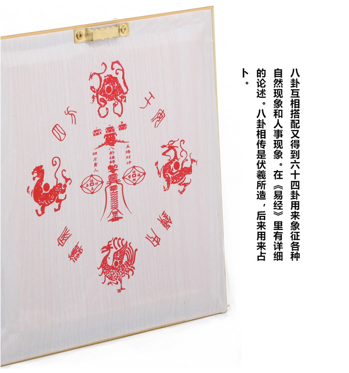 Product features: Gossip is?Chinese?ancient?are a set of symbolic signs,?by?three longpainting?or?draw broken?consisting of eight?kinds of schema,?used fordivination and?symbolism in?China?and japan.?Bagua map?is?Chinaancient?science and cultural heritage,?is the crystallization of?the wisdom of working people?Chinese?ancient?civilization.?It is not only?for the people in the ancient?achievements indelible contributions,?which is in the modern?has also made a?very important contribution. Product?introduction: Name:?mountain town?gossip?copper?mirror. Material:?Copper Size: six?inch?width 19.5cm,?height of about 19.5cm,?about 1.5cm thick, Seven inch?width 25cm,?height of about 22cm,?about 1.5cm thick, Twelve inch?width 37.5cm,?height of about 33cm,?about 2cm thick, Weight: six?inch?weighing about?272g?(net), Seven inch?weighing about?420g?(net), Twelve inch?weighing about?1168g?(net), Packaging: general packaging |