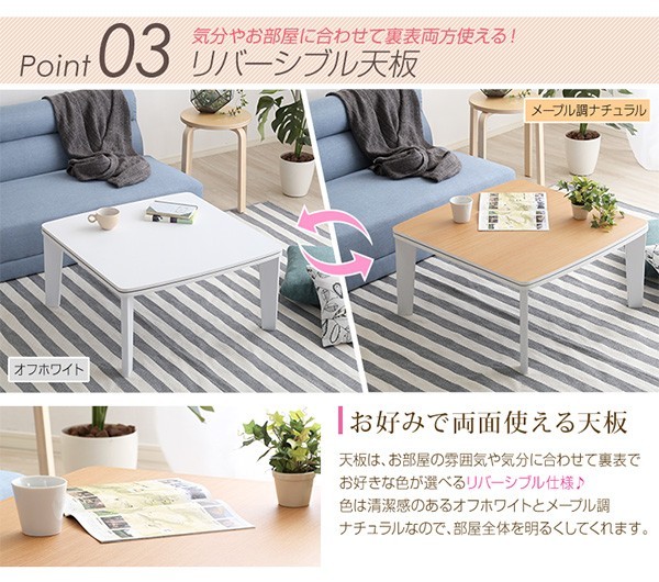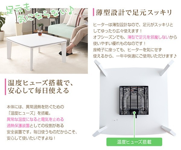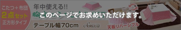ホワイトカジュアルこたつ【soneca-ソネカ-】正方形タイプ(70×70cm幅) ![]() カジュアルこたつ【topo-トーポ-】正方形タイプ(70×70cm幅)はこちら ![]() カジュアルこたつ【topo-トーポ-】丸型タイプ(直径80cm)はこちら ![]() |