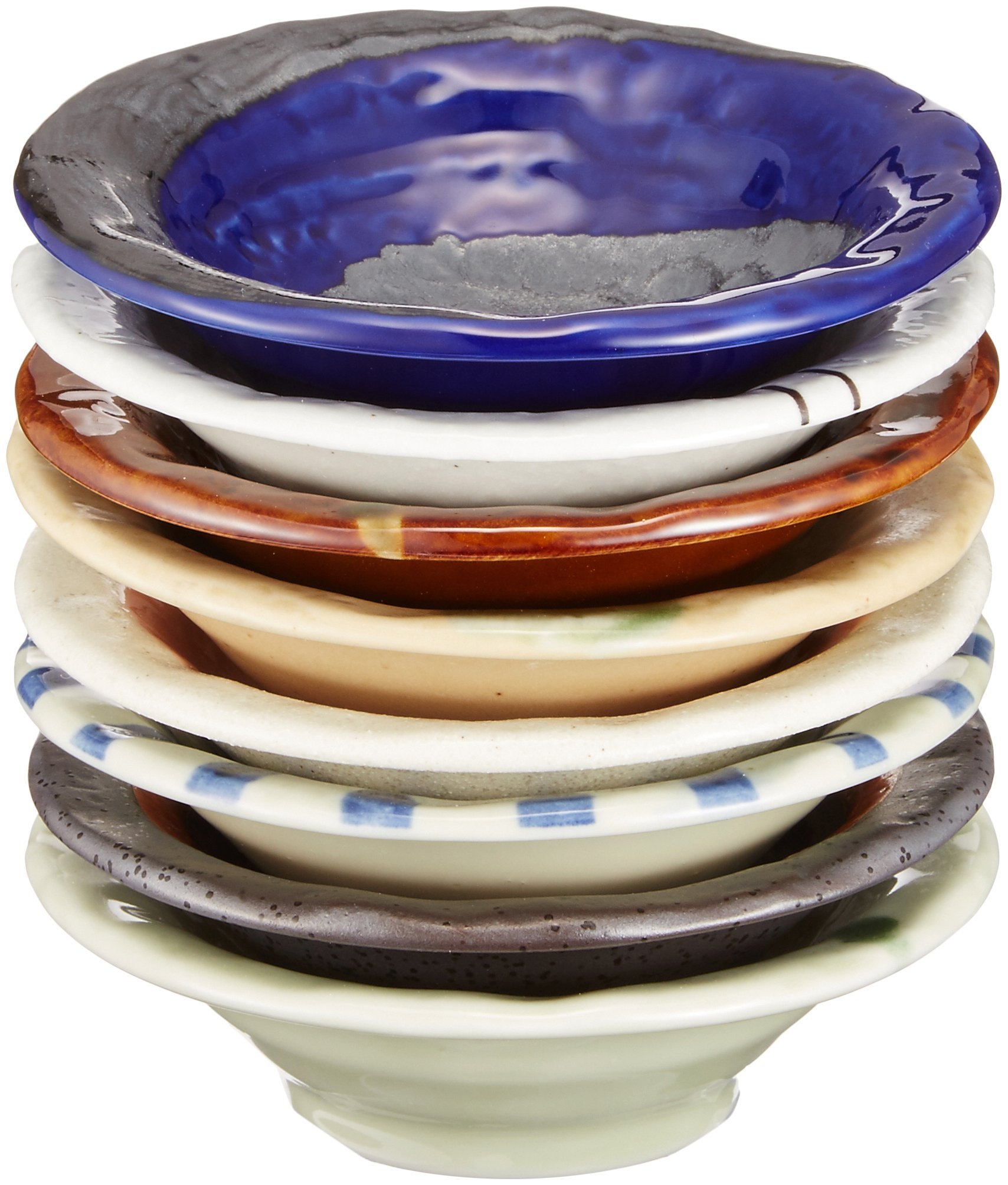 Minoyaki Yuyaku Set of 8 small bowls in the wooden box Japanese porcelain