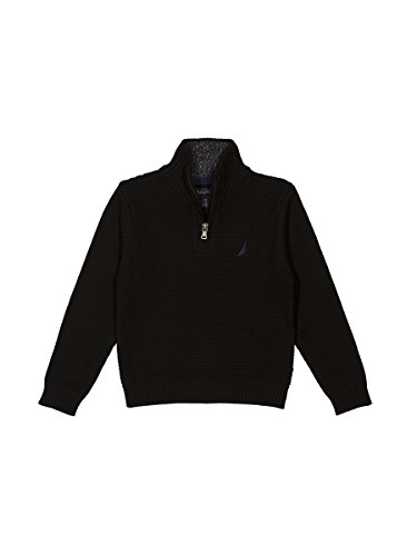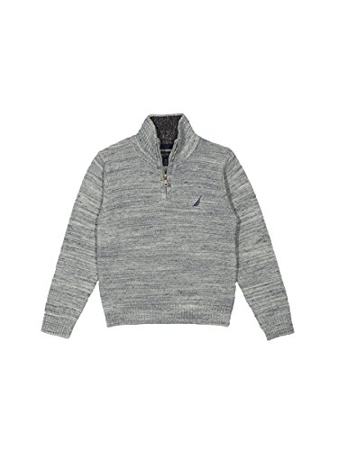 Nautica Big Boys' Zip Neck Ottoman Stitch Solid Sweater, Grey Heather, Medium (10/12)