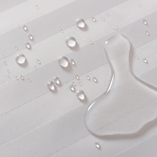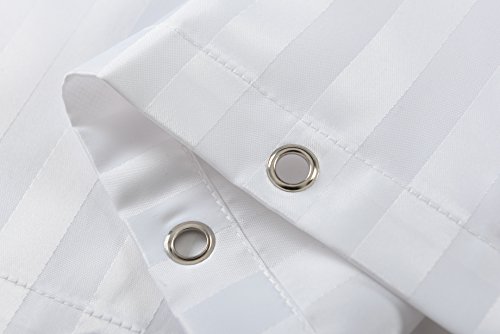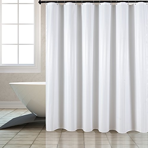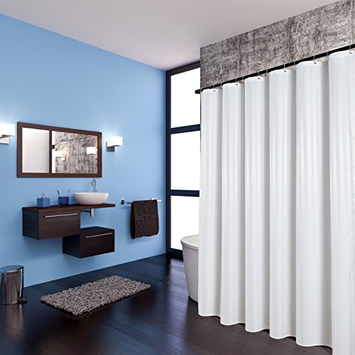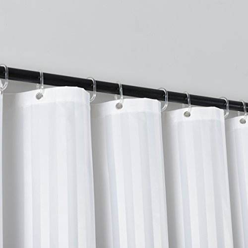 Fabric Shower Curtain or Liner Damask Stripes Fabric Water Repellent Water Proof Mold and Mildew Resistant Copper Grommets Weighted Bottom 12 Clear Hooks 72 In X 72 In White by Flora Home