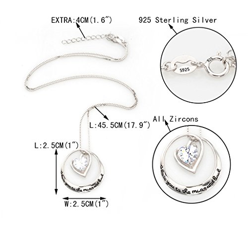 -. Binding : Jewelry -. Brand : EVER FAITH -. Department : womens -. Feature : Heart-shaped Pendant Necklace Craved with "I Love You to the Moon and Back". It would be stunning when you wear this necklace with your beautiful outfit in normal days or special occasions. / We have SGS Professional Certification for our Sterling Silver Items. Customers could go to a professional agency for testing them. 925 Sterling Silver is also suitable for sensitive skin to wear. / The big cubic zirconias is pronged to the jewelry item to secure from loosing. / Length: 45.5cm(17.9"), Pendant Size: 2.5cm(1") by 2.5cm(1"), Weight: 5g / WRAPPING: A Silver Polishing Cloth X A Gift Box X A Favor Bag. If you need assistance please contact us. -. Label : EVER FAITH -. Manufacturer : EVER FAITH -. ProductGroup : Jewelry -. ProductTypeName : FASHIONNECKLACEBRACELETANKLET -. Publisher : EVER FAITH -. Studio : EVER FAITH -. Title : EVER FAITH Women's 925 Sterling Silver CZ Mother's Gifts Love Heart Pendant Necklace Clear