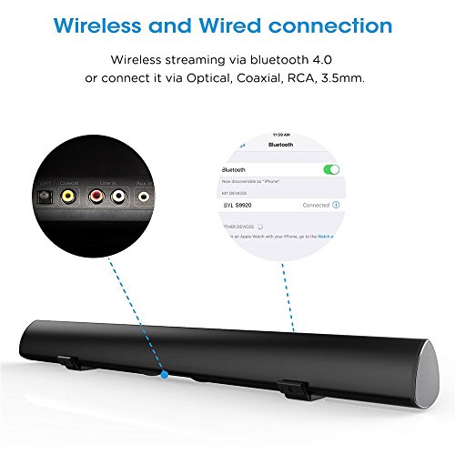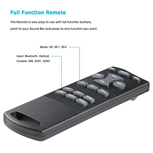 -. Title : MEGACRA Sound Bar 2.0 Channel Bluetooth Home Theater Soundbar (Remote Control, 3D Audio Mode, Wirless and Wired Connections) (2017 Model)