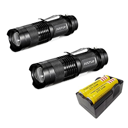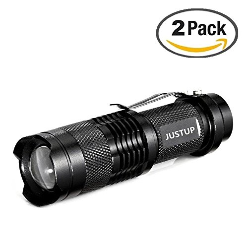 JUSTUP XS10 LED Flashlight: 500Lumen, ZOOM, Waterproof, Small Volume,Focus Adjustable, 50000 Hour Cree LED Torch, Industrial Grade, 2 Brightness Levels Plus Strobe--2 Pack