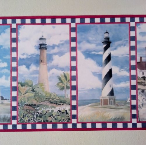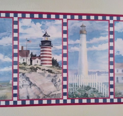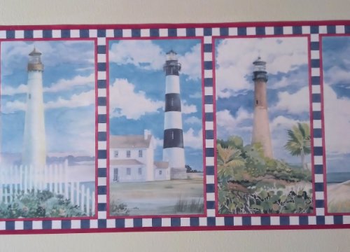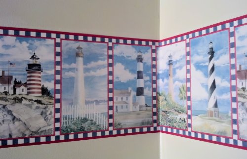 -. Feature : Lighthouse Wallpaper Border - 5 Scenes framed in series / Prepasted Wallpaper Border - 15 Foot Long Spools / 10.25 Inches Wide - Washable, Strippable