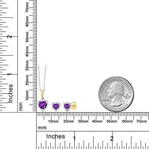 -. Title : 18K Two Tone Gold 1.15 Ct Heart Purple Amethyst and Diamond Pendant Earrings Set