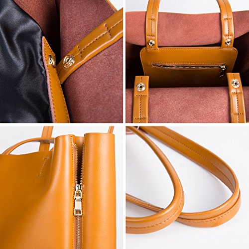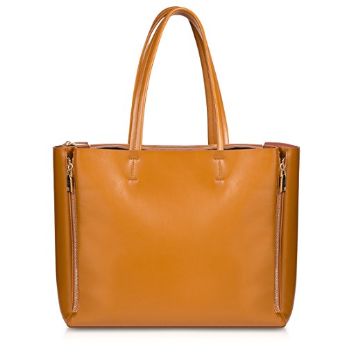 Kattee Women's Genuine Leather Double Zip Large Tote Shoulder Bag