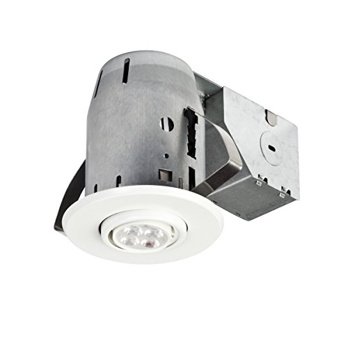 Globe Electric's 4 pack 3" LED IC Rated Swivel Spotlight Recessed Lighting Kit with white finish is the perfect way to brighten up the interior of your home or commerce with style. Featuring patented PUSH-N-CLICK clips which are fully adjustable and extra wide to grip uneven surfaces and provide easy tool-free installation. A swivel light bulb gives you the ability to focus light on specific areas and can be directed for any desired look. An integrated cut-off switch ensures that the fixture will not overheat and can be used with or without an insulation box. Includes four 50W equivalent MR16 GU10 light bulbs. Dimmable with compatible bulb and dimmer switch.Feature