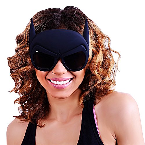 The Sunstaches Officially Licensed Batman Mask Sunglasses allow you to become the superhero of Gotham City! Sunstaches provide 100% UV 400 protection and ultimate party fun. These one-size-fits-most sunglasses transform you into the star of the show, whether it's a themed party and pop culture costume or your favorite character. As seen on Shark Tank, these sunglasses are comfortable and perfect for adults and children all of all ages! Sun-Staches can instantly transform anyone into the life of the party or the most interesting person at the supermarket. For the adults, it's the perfect way to bring out your inner kid-at-heart personality. Would you rather play a game of ultimate Frisbee with some boring guy without glasses or your neighbor who just happens to be wearing a leprechaun mask and having the time of their life? Our thoughts exactly.Feature
