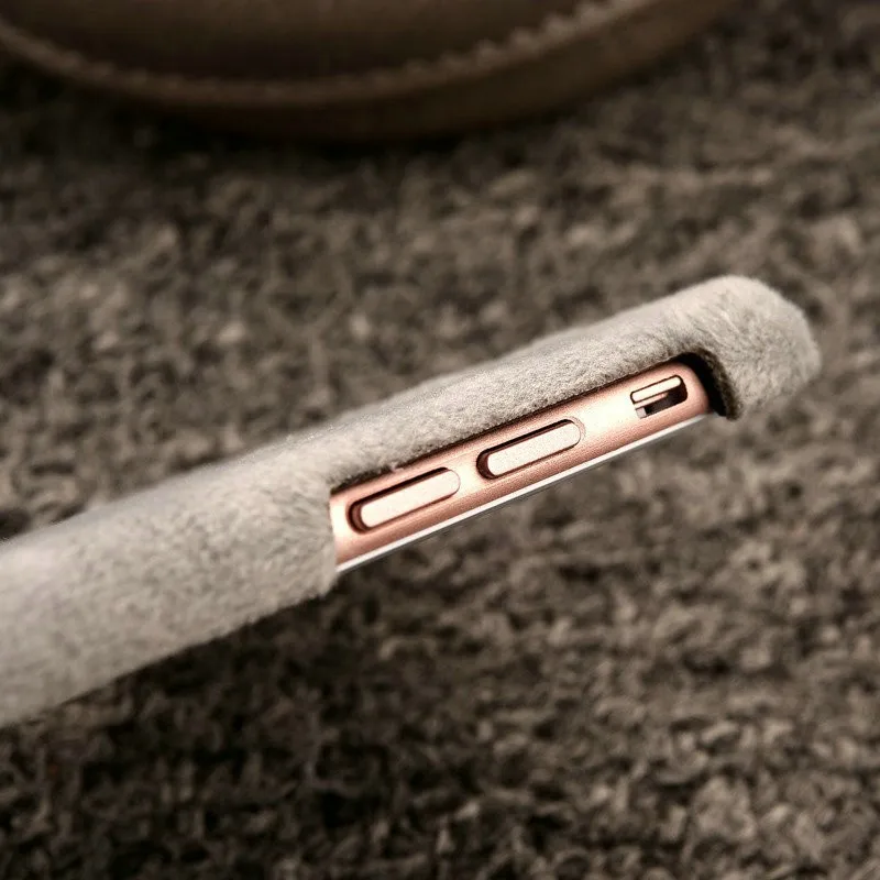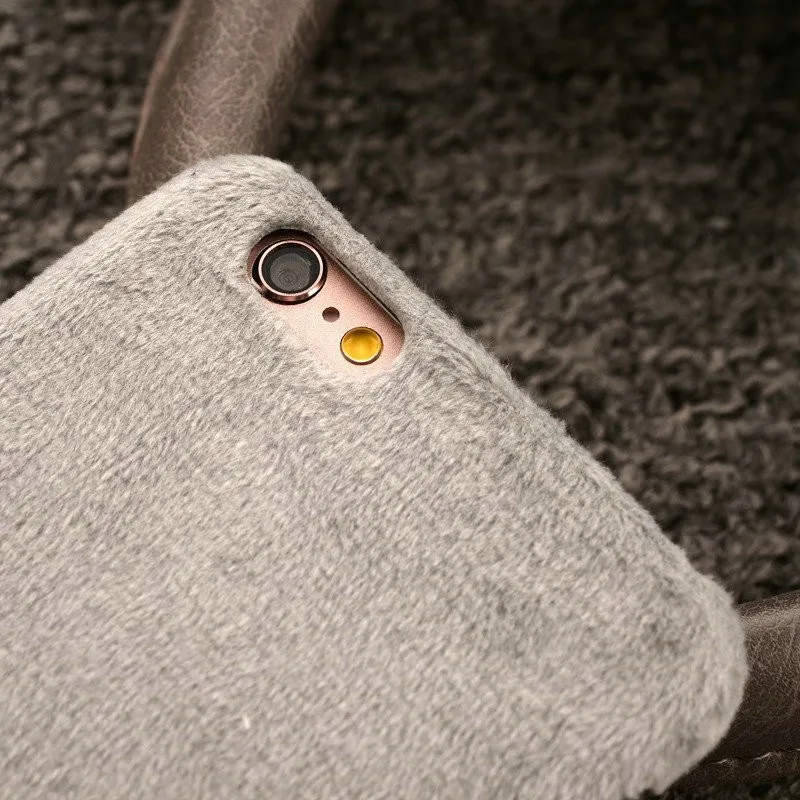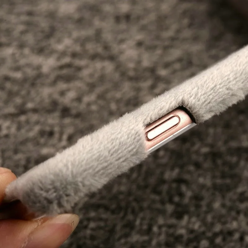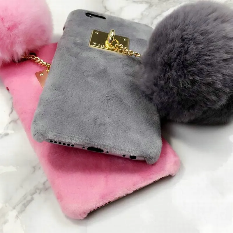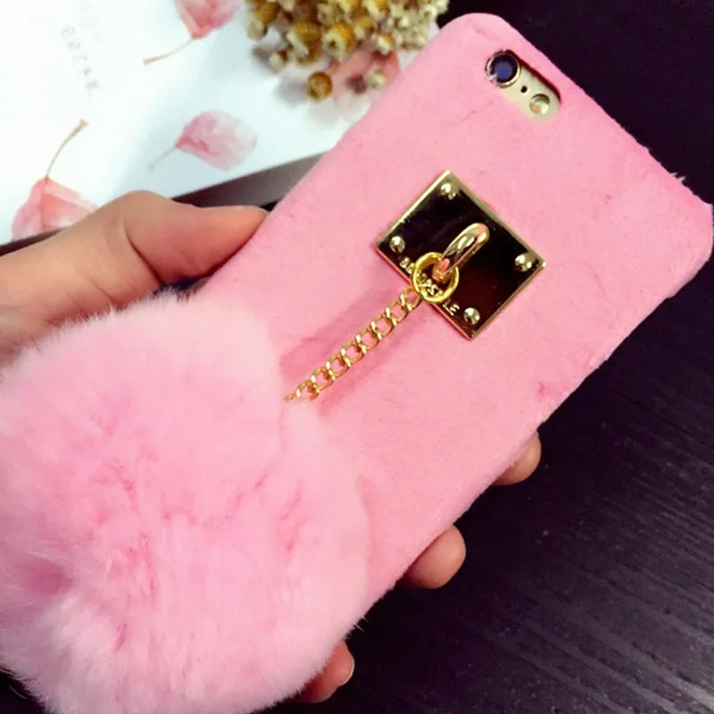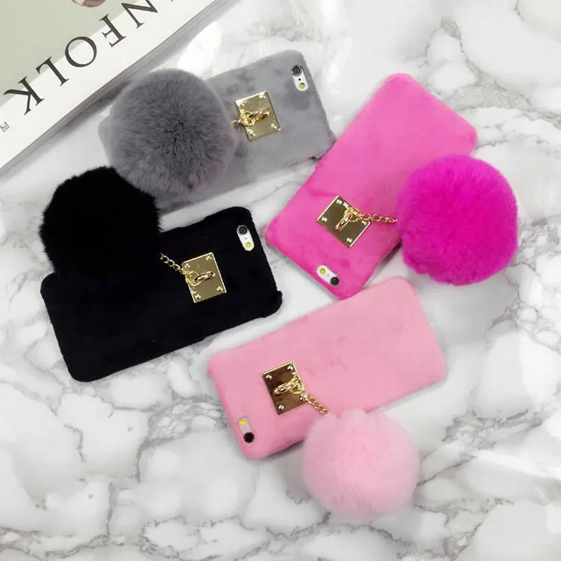 Warm Winter Luxury Gril Fur Ball Case Metal Ring plush phone case For iphone 7 6 6S plus 5 5S Hard back Coveru0026nbsp;