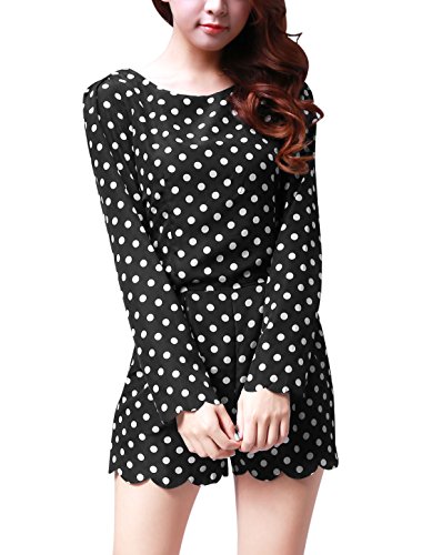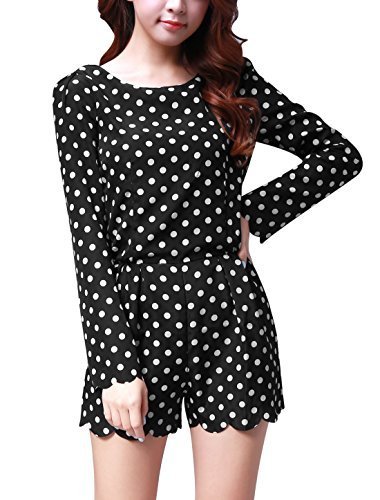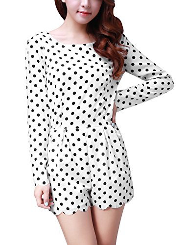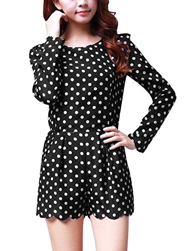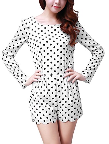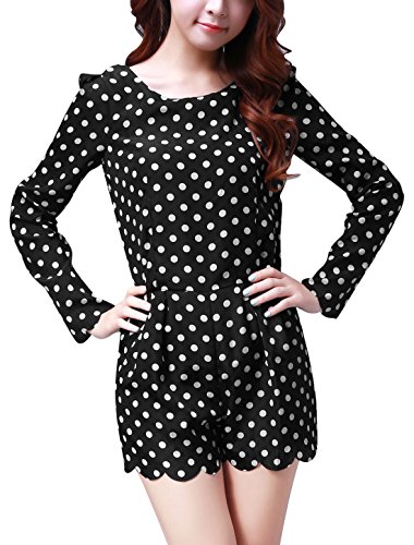 -. Title : Allegra K Damen Gepunktet Reißverschluss Strampler Langärmelig Kurzer Overall