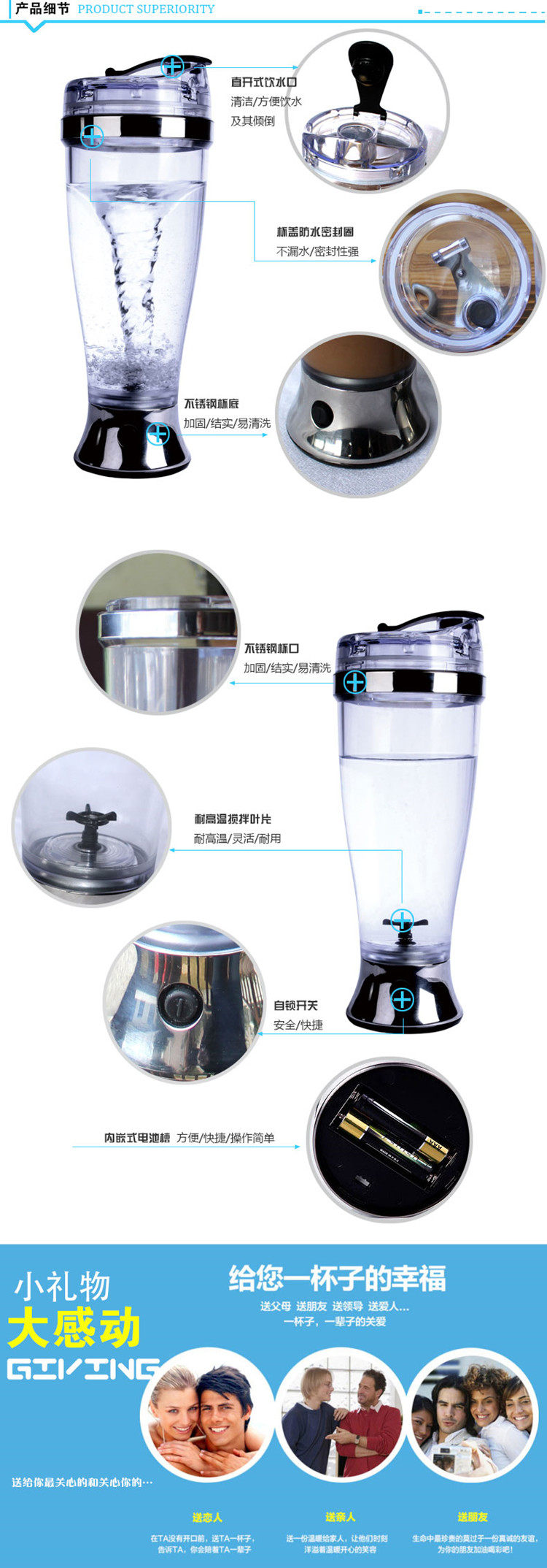 Material: food-grade transparent plastic (excluding BPA), high-quality stainless steel