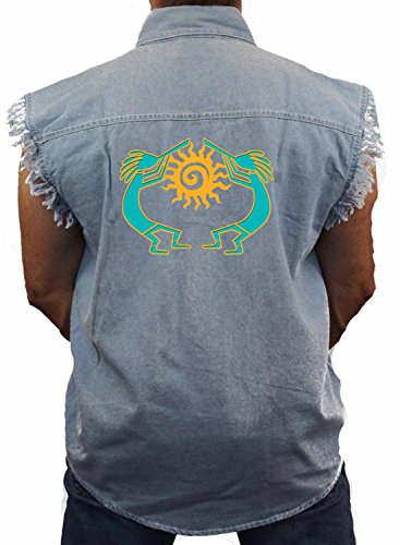 (Juiceclouds)/Men/Outerwear/DIRECT FROM USA/Juiceclouds | Native American Sleeveless Denim Ves t Sun Dance Kokopelli M-5XL