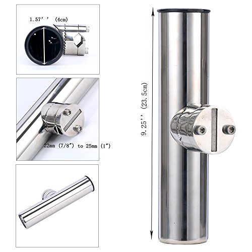 Studio : Amarine-made Publisher : Amarine-made Binding : Sports Product Description Product Description This product is a 100% brand new Amarine-madeTM product 1 x high quality, marine grade 304 stainless steel rod holder with marine grade 316 Stainless steel clamp-on mounting bracket Mirror finished stainless steel construction , for sleek appearance and to suit today's modern watercraft Rubber insert to protect your fishing rod from any wear against the stainless surface Can be mounted to vertical or horizontal rails - Adjustable for rails 22mm (7/8") to 25mm (1") diam. Rod holder can be adjusted to 32 different angles when mounted Easy to install, mounting bracket includes bolts (allen key not included) Stopper slot built into the base of the rod holder to located the rod butt into position Drain holes at base of rod holder to drain any captured water Ideal for fishing boats with rails, where gunwale space may be limited Specifications 1 x marine grade 304 stainless steel rod holder with marine grade 316 clamp-on bracket 1 x Rubber insert (fitted) Tube length 230mm (9") Inside diameter 42mm Outside tube diameter 52mm this is product branded amarine-made 0