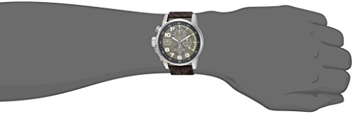 -. Feature : Chronograph with 1/10th, 60 second and 60 minute sub dials, date display, dark brown leather band and left handed push crown / 46mm stainless steel case with a mineral crystal / Quartz Movement / Case Diameter: 46mm / Water resistant to 100m (330ft): in general, suitable for swimming and snorkeling, but not diving