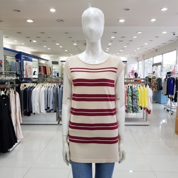 단가라 민소매 티셔츠-CA7U5-WSP010-베이지/스트라이프