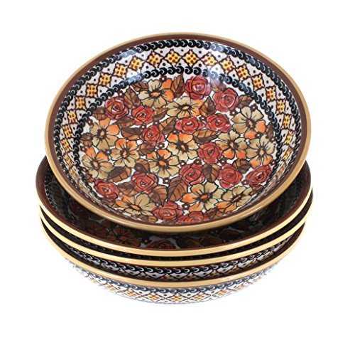 Polish Pottery Autumn Rose 4 Piece Large Salad Bowl Set