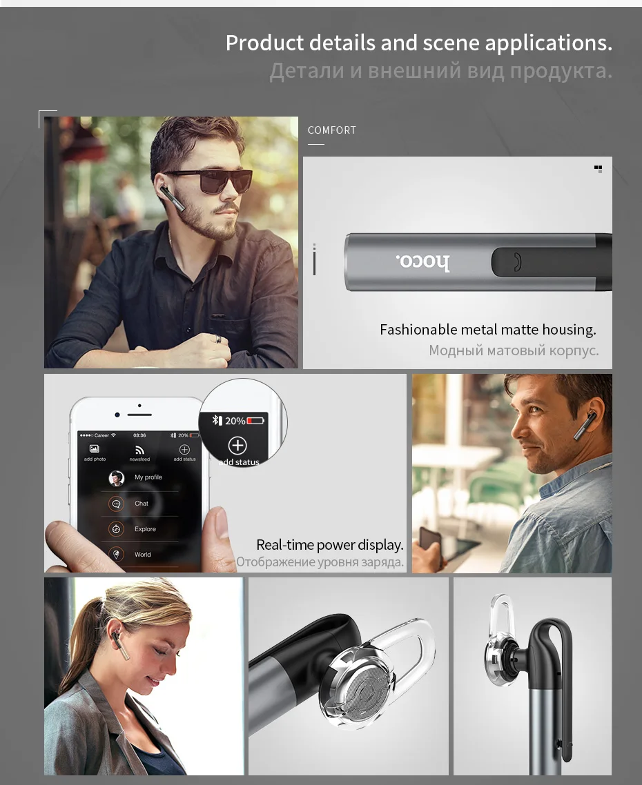 HOCO Mini Bluetooth Earphone with Microphone Wireless Headset for iPhone Invisible Earpiece Music in-ear Hook Handsfree for Car