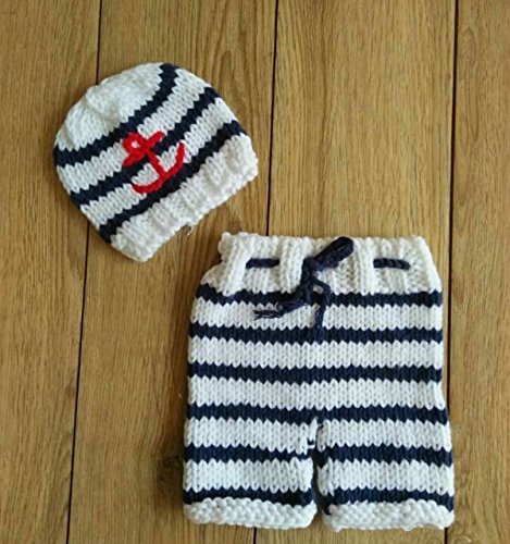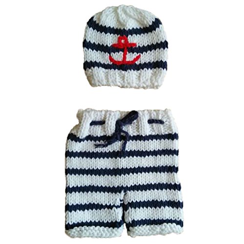 Jastore Photography Prop Baby Crochet Navy Stripe Costume Hat Pants