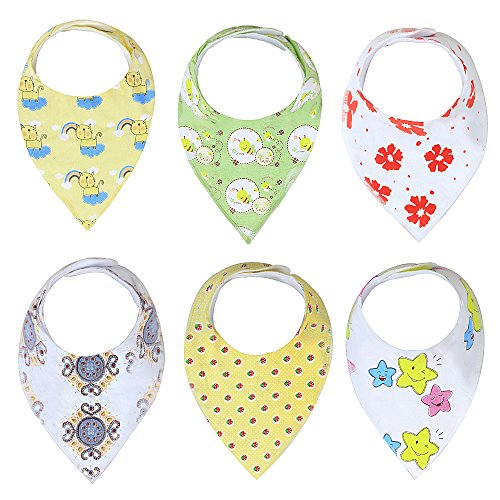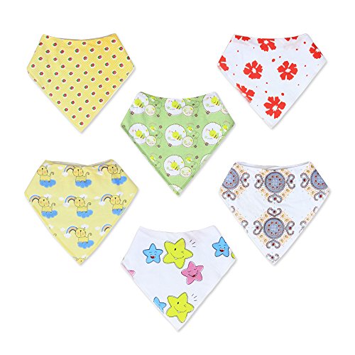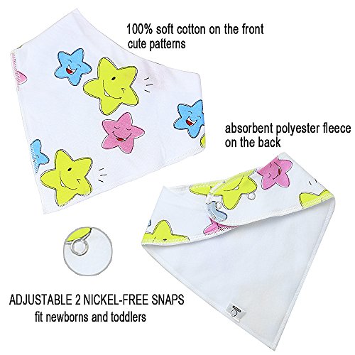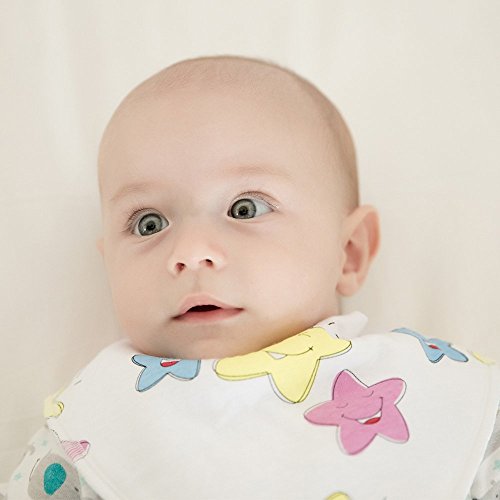 ♥ABSORBENT COTTON BABY DROOL BIBS - Made from 100% soft cotton on the front and extra absorbent polyester fleece on the back. Work well to keep your baby drier while they continuously drool during your baby’s teething stages which can also help prevent the breakout of rashes under your baby’s chin.