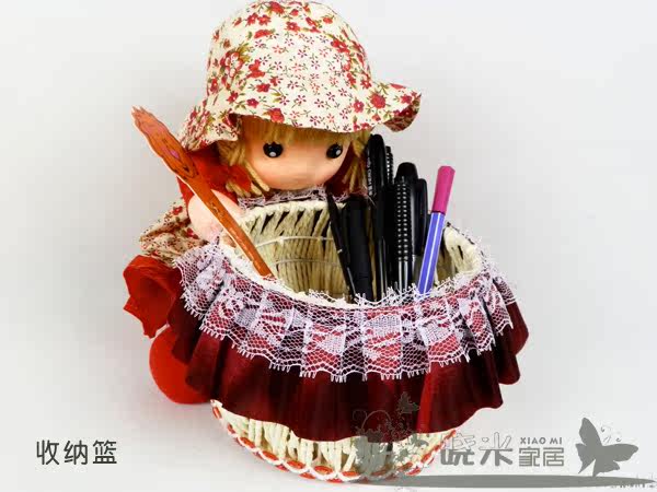 [Name] rope made blue cartoon cosmetics, remote control basket