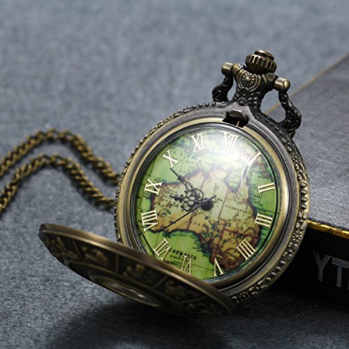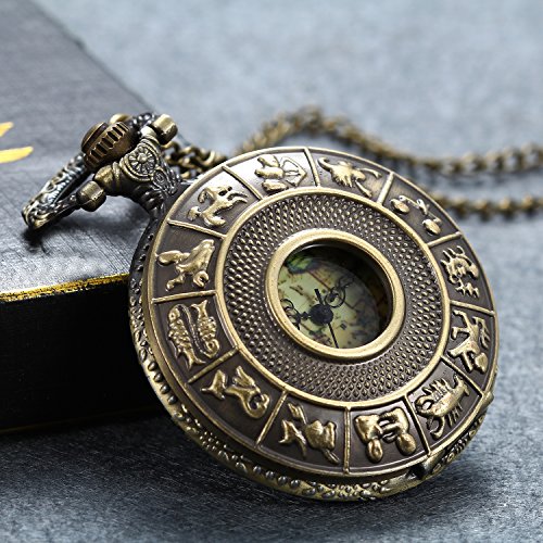 -. Title : Lancardo Unisex Antique Vintage Retro Pocket Watch with 12 Astrology Tatoo World Map Dial Sweaterchain