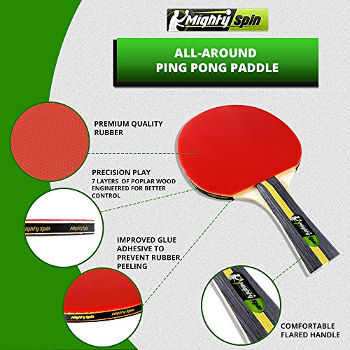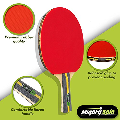 MightySpin Ping Pong Paddle (Red) All-Around Table Tennis Racket w/ Enhanced Control, Spin, Bal...