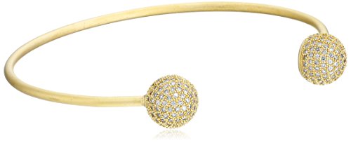 Freida Rothman Gold-Plated Silver and Cubic Zirconia Spheres Open Cuff bracelet