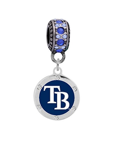 -. Feature : Tampa Bay Rays Charm with Connector Bead Fits Most Large Hole Bead Bracelets like , Kays, Chamilia, Biagi, Troll / The slide on bead connected to the charm is stainless steel with royal blue and light blue crystals. It will not rust or tarnish / Charm is a semi-cloisonné' design with a hard enamel finish / Charm is a base metal, lead and nickel free ~ the size of a dime / Available for immediate USPS shipping from Oak Ridge, TN