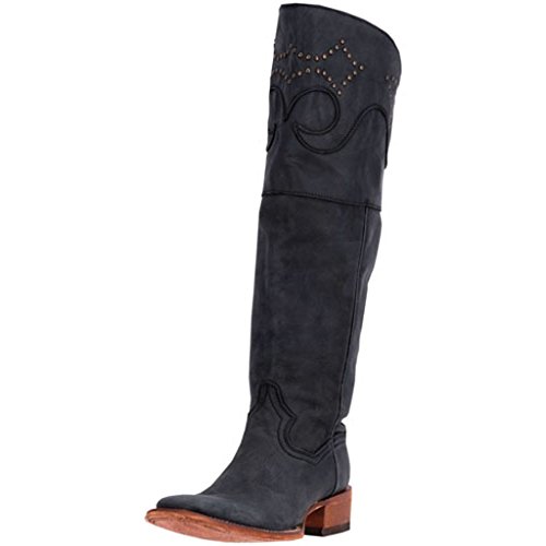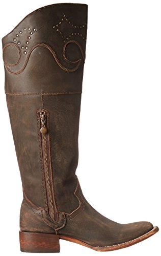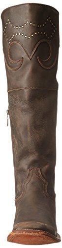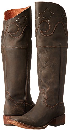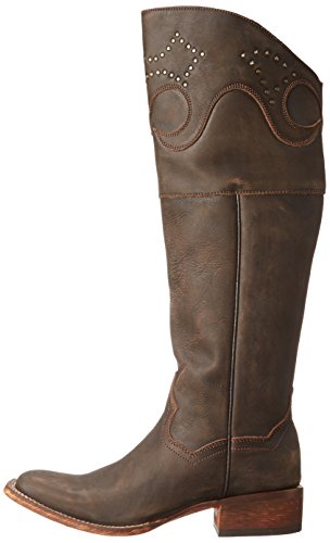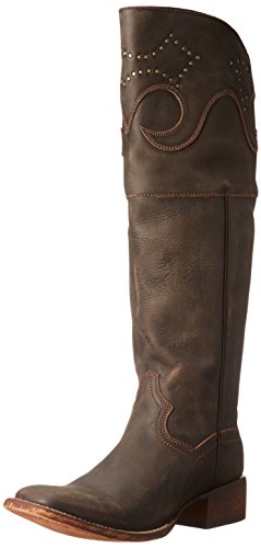 Studio : Dan Post Footwear Publisher : Dan Post Footwear Binding : Shoes Product Description These authentic handmade brown leather women's cowboy boots from Dan Post feature a soft-strike footbed, walking heel, and broad square toe. Made with only premium materials and the signature Dan Post "Handcrafted Cushion Comfort" design, these boots are a true western classic. The fashionable tall shaft looks great when worn over skinny jeans or leggings and your favorite denim shirt. Studded details and fancy overlay adorn the shaft of these women's riding boots. 0