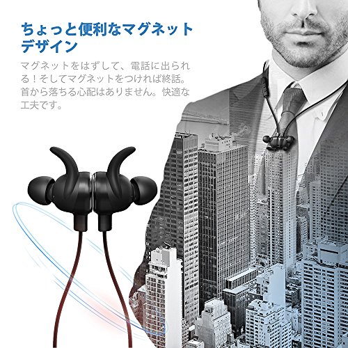 -. Feature : 羽のように軽い: 一般のワイヤレスヘッドホンより10%の14.6g軽量化を実現しました。その精妙なデザインと軽さをぜひお確かめください / aptXとCVC、2つの技術でよりよいサウンドを: 高音質デジタルサウンドの代名詞 aptX コーディクを採用。さらに、CVC ノイズ軽減テクノロジー搭載で、ワイヤレスであることを忘れます。 / マグネットデザインでいつでも安全: お仕事中は控えめに、マグネットでネックレス風にして、首の周りに感じよく収めておけば、いつでもスタンバイOK! / 安定のBLUETOOTH 4.1 採用: 安定感で定評のあるBluetooth4.1を採用。さらに一体化されたセラミックアンテナがよりよい通信環境を作りだします。 / マイク内臓 & リモートコントロール: リモートコントロールで曲送りやボリュームの調整が簡単にできます。マイク内臓で、通話しながら両手が自由に使えますね。