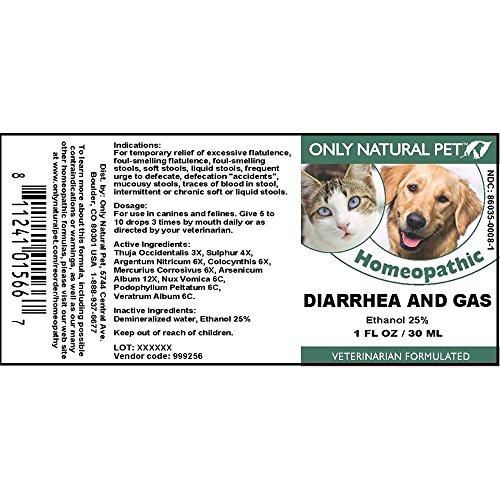 -. Binding : Misc. -. Brand : Only Natural Pet -. EAN : 0811241015667 -. Feature : For Pet Type(s): Dogs & Cats / Completely Natural / ApproP.R.Iate for all ages and breeds -. Label : Only Natural Pet -. Manufacturer : Only Natural Pet -. Model : mp-999256 -. MPN : mp-999256 -. NumberOfItems : 1 -. PackageQuantity : 1 -. PartNumber : mp-999256 -. ProductGroup : Pet Products -. ProductTypeName : PET_SUPPLIES -. Publisher : Only Natural Pet -. Studio : Only Natural Pet -. Title : Only Natural Pet Diarrhea & Gas Homeopathic Remedy -. UPC : 811241015667