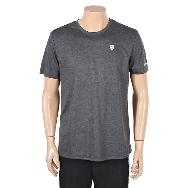 흡습속건이 우수한 MELANGE SINGLE POLY 100% 소재를 사용한기능성 라운드 티셔츠. 등판에 톤온톤 POLY MESH를 사용하여 벤틸(통풍)기능을 주었고 앞판 프린트로 포인트를 줌.